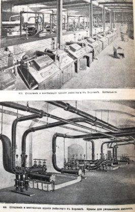Шутки еще будут, но на тему отопления. А сейчас посмотрите как выглядела котельная в подвале немецкого Рейхстага. Котлы частично паровые,частично водяные, всего их 18. Система отопления комбинированая, паровая и водяная. На нижнем снимке регуляторы давления, 1887год.