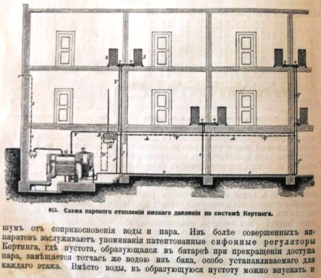 Вот и до системы отпления добрался. Сразу отмечу,что есть эта фотография лучшего качества, но без обрывка текста. Датируется это дело 1885годом.