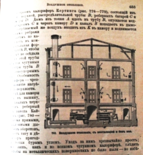 Может быть вам известен способ использования тепла удаляемого воздуха, кроме рекурперации? Опять извиняюсь за фото. Воздушное отопление дома при помощи калориферов Кёртинга, 1883год.