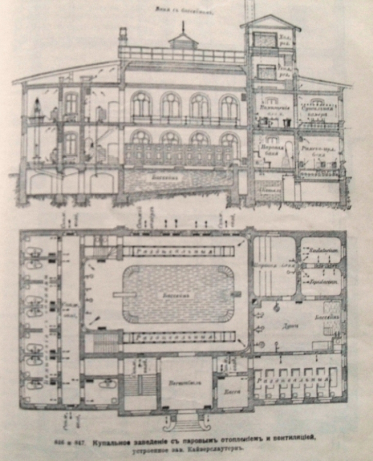 Сегодня у нас очень интересная система отопления, я бы сказал уникальная. Впервые отопление здания осуществлено в тесной связи с воздухообменом помещений. Этого к сожалению нет в наших водяных системах, тема эта отсутствует в современных системах, за исключением разве одной. Это система отопления с ОП ижекционными доводчиками, но она очень сложна и дорога и применяется в единичных случаях. А вот показанная система регулируется по воздуху не затрагивая гидравлику самой системы. ОП здесь работают больше как калориферы, или приборы с повышенной конвекцией. Таких систем у меня в колекции две, вечером покажу еще одну. Качество фото опять не супер, но понять принцип можно. Стрелками показано движение воздуха через приборы.Полное название системы "Паровое отопление с нагнетательной вентиляцией", год рождения 1885.