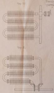 Заканчивая "выставочную" тему хочу показать еще один прибор, о котором я писал раньше. Лукашевич, автор этого отчета о выставке, писал о американском радиаторе, которого на выставке не было.По этому прибору он писал, что этот прибор предназначен для обогревания магазинов, что внутреннее устройство несколько схоже с американским радиатором. Здесь он впервые употребляет это слово, и далее пишет, что прибор принадлежит Авг. Бассель из города Кассель. На фото показан этот прибор. Прямо скажу, что он мало похож на радиатор, кроме трех перегородок образующих отдельные каналы и предназначен он для пара.