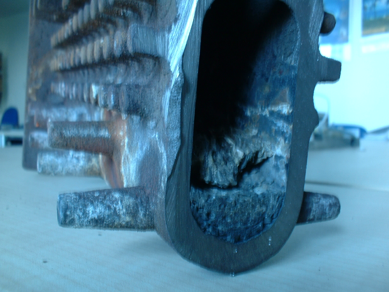 Иллюстрация температурного растрескивания секции котла. В данном случаи из за солевых отложений и осадка.