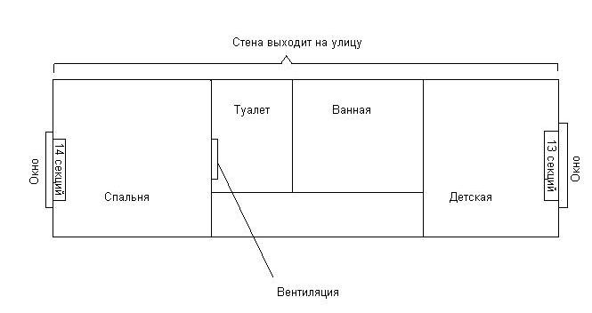 Цитата(jota @ 11.3.2010, 17:52)  В этом месте мостик холода и температура стены низкая. И ещё причина в том, что последнее время видимо влаговыделения в квартире увеличились, а вентиляция уменьшилась. Спасибо за предупреждение о вредности, в ближайшее время выведу, другое дело чтоб не появилась вновь. Но влагоприток не увеличился, не изменились и другие исходные данные, кроме наружной температуры - в этом году с декабря месяца по март не было плюсовой температуры, а средняя была в районе-15, что не характерно - промерзли блоки. была плесень и в другом месте - отловил (за мебелью) не было циркуляции воздуха пропала, сейчас в этом месте (потолок) вытравлю и мебель подвигаю, посмотрю, что будет след зимой. Цитата(MAKSIM2030 @ 11.3.2010, 17:57)  Дом 1995 года, кирпичная шестиэтажка. Этаж третий. Жилая комната. Соседне помещение - туалет (одна стена так же выходит на улицу, батареи нет поэтому и там холодно и сыро). прилагаю эскиз: задрали архи лепить сан/узлы к наружным стенам