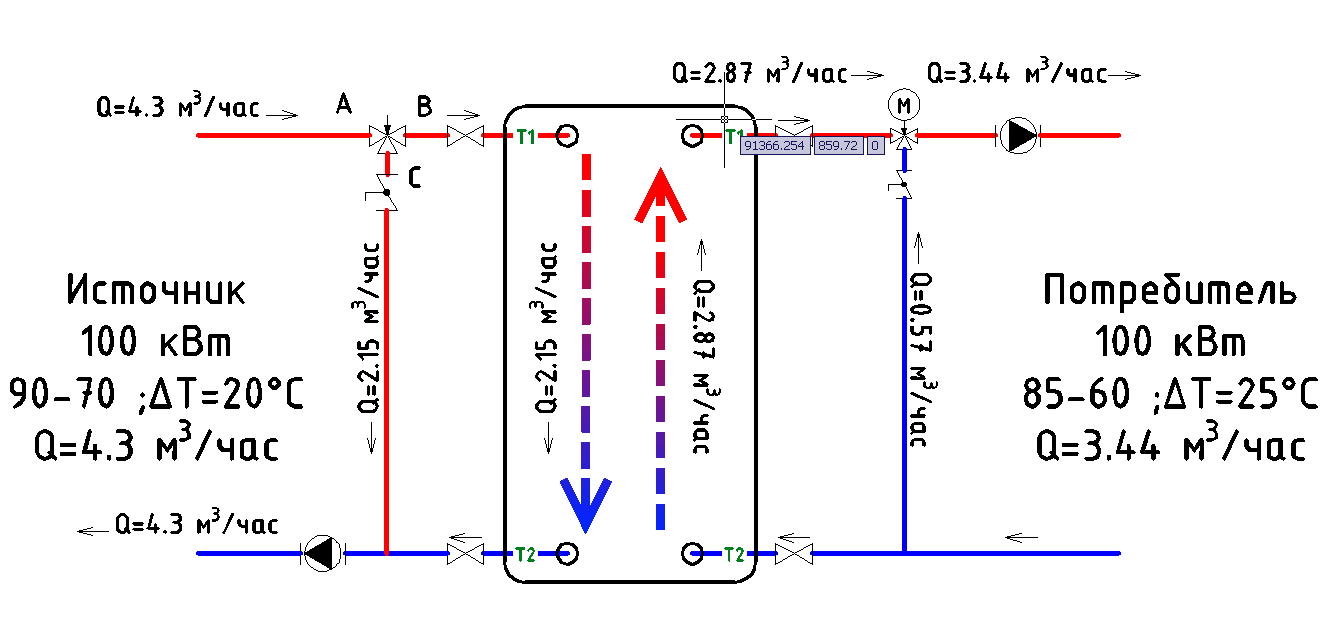 Цитата Что это вообще за "работа" такая? Вероятно под работой подразумевается ряд выполняемых функций: - гидравлическое разделение теплогенератора и теплопотребителя (основная) - расслоение теплоносителя по температуре, сбор шлама и выпуск воздуха (побочные) Так вот, я не могу понять как может больший расход теплопотребителя помешать "правильной работе". Может как раз расслоению теплоносителя? Эх найти бы клапан нормальный термостатический, такой, чтобы A-C закрывался пропорционально открытию A-B