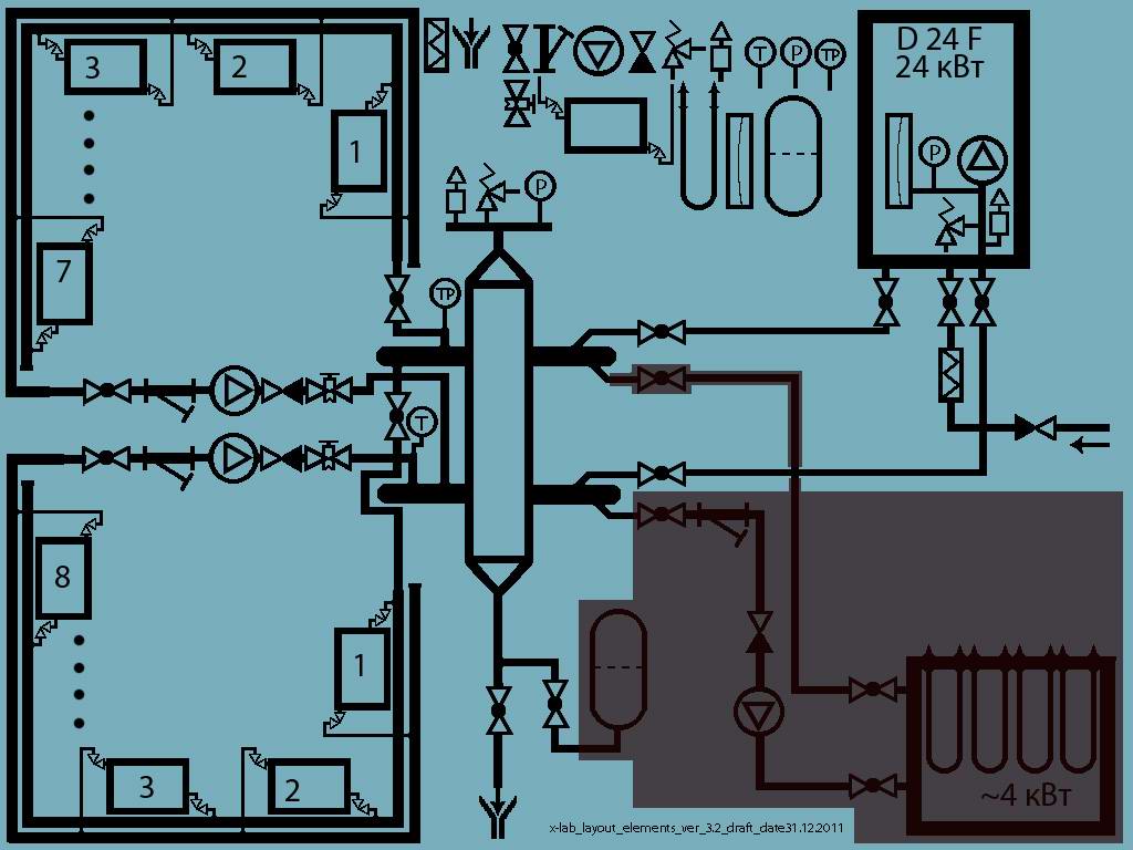 К сожалению не успел картинку сочинить сегодня... вернее вчера. сегодня думаю доберусь до нее Схема такова: 2 котла: 1 газовый24квт(с насосом) 2 - хочу поставить самы простой электрический. кВт на 6. Котлы, каждый со своим насосом включаются в стрелку. А на выходе - 2 ветки отопления: на 2 половины дома...