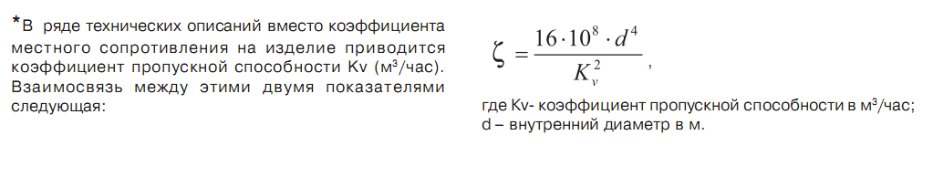 Задачей гидравлического расчёта системы отопления является определение линейных и местных (потери на поворотах и разветвлениях трубопровода, в отопительных приборах, котле, и также в запорно-регулирующей арматуре системы) потерь напора. Для определения падения напора в запорно-регулирующей арматуре необходимо знать коэффициент местного сопротивления применяемого устройства (вентиля, задвижки, терморегулятора).Но каталогах производителей запорно-регулирующей арматуры даётся только информация о пропускной способности( Кv= М^3/ч )устройства при разности давлений в 1 Bar. Либо графики падения давления в зависимости от расхода. Вопрос: Можно ли определить коэффициент местного сопротивления устройства зная его пропускную способность? Есть ли какая-нибудь зависимость между Кv устройства и Коэффициентом местного сопротивления?