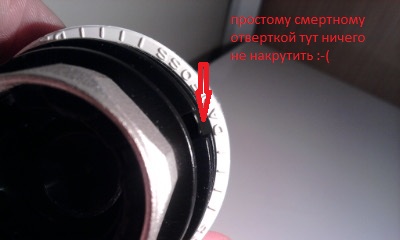 2) радиатор не заработал - причин две: а) "подбился" грязью или "залип" вентиль (ремонт - покручивая головку от мин. до макс. постучите по вентилю металлическим молотком (ключем). обычно это помогает. б) неисправен вентиль (если п."а" не помогает) -вызовите слесаря и замените вентиль. эти манипуляции были выполнены в первую очередь, так и есть с другой термоголовкой все работает, я вот и решил копнуть поглубже, как же так.....вроде новые регуляторы (даже не стояли на радиаторе, в сторонке лежали - и чего ее расперло тогда?) а вот насчет блокировки еще совет хороший! только про блокировку ничего не знаю...как она ставится.. есть только это дословно "Используйте черную точку на кольце рукоятки для сохранения значения температуры к которой вы хотите вернуться, для чего поместите ее напротив вершины треугольника на торце головки. теперь после любых манипуляций достаточно совместить вершину треугольника с точкой и вы вернетесь к исходной температуре" да и вообще..на этикетке написано - что на регуляторе 4 значения - (I-14 C; II-17 C; III-20 C; IV-23 C) - а регулятор вообще с тремя значениями (I-III)  вообщем как всегда на коробке одно а внутри другое