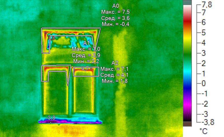 По фото если сомтреть, дело не в откосах, а в самом стеклопакете. Встречались с таким, чт о вроде бы стоит нормальных ПВХ стеклопакет, а тепловизор показывает утечки. Это утечки идут между самим пакетом и пластиком, в который он вставлен. Причина - такое вот качество пластика. Был один случай, клиент поставил пластиковую дверь, но не такую как в магазинах, а на наподобие окна, т.е. было там всего лишь 2 навеса. И вот снаружи -10, а внтури +20, и дверь эту выгнуло дугой так, что щель стала видна невооруженным глазом. Т.е. там где было - 10 пластик сжался, а там где +20 - расширился. А так с виду нормальная пластиковая дверь. Так что тут вопрос более (как у врачей) моральный - стоит ли заку говорить и взрывать ему мозг инфомацией о том, что его "супер пластиковые окна" - гавно, ведь теперь то уж менять явно не будет! Да а на фото, не такие уж большие и потери там  ! (рассчитано исключительно на выпуклый энергоаудиторский глаз).  !