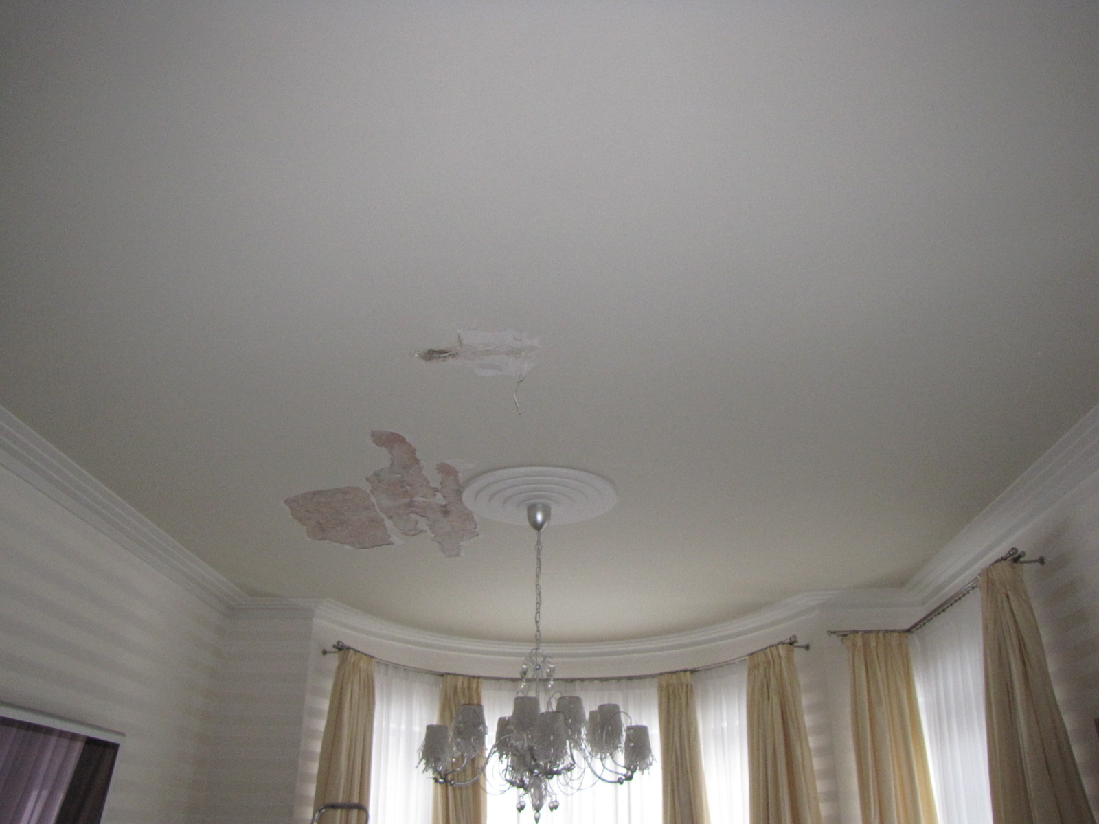 Первое предположение - конечно же протечка от соседей (тёплый пол). Опять же тёплый пол мог бы и просматриваться по всему потолку.... в зависимости от качества утепления. Есть ли соседи вообще? Что сверху? А что за полосы - расходятся влево и вправо от эпицентра (точки С и D)? (если по трубам жб перекрытий, то должно быть думаю равномерней). Перекрытия - монолит ЖБ или пустотелые? Какое отопление? Время года?