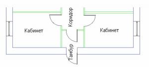 Здравствуйте, уважаемые специалисты! Тема прервалась, после достаточно эклективного обсуждения, перескакивания с одного вопроса на другой. Обращаюсь к проектировщикам. Тем, кто расчеты теплопотерь делает по нормативным докуметам и защищают свои расчеты у экспертов. Интересует вопрос, как вы учитываете в расчете тамбур? Учитываете ли вы тепловые потоки из помещений (на рисунке - из коридора и кабинетов) в тамбур. Какую при этом берете темпратуру в тамбуре? Если рассчитываете ее по балансу, то что в Вашем понимании СНиП-овская "двойная дверь с тамбуром" и как в балансе учитываете добавки на врывание холодного воздуха? Думаю, что рассматриваемый случай есть если не в каждом первом, то в каждом втором проекте. Еще раз повторю, что меня интересует мнение именно проектировщиков.