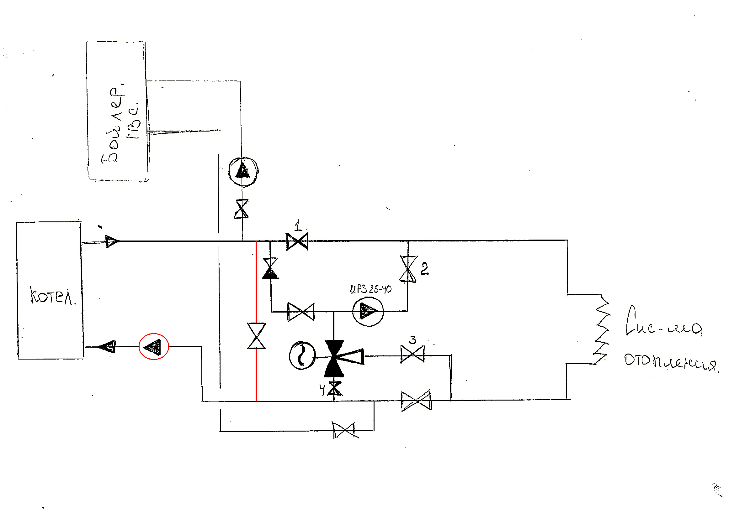 Схема - не интересная и подлежащая замене, а не исправлению. Грыжу зашивают, а не лечат. Вот может быть справочник мастера - сантехника за 1953 год сможет Вас как-то убедить. Не тратьте энергию на это. Если сразу не понятно даю наводку - у Вас расширительный бак и насос на подаче....
