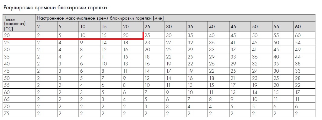 после общения с вами я чувствую себя полным дураком. Я из Якутска, у меня мозг отмерз еше в детстве, вы мне на пальцах обьяснить не можете, блокировка отопления что это? время работы горелки? увеличил я его поставил 25 сижу жду чуда.