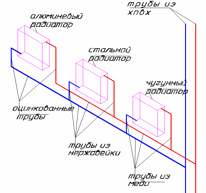 Заказчику требуется спроектировать систему отопления в офисе! В своем офисе он хочет представить демонстрацию нескольких видов элементов отопления (рис.) система замкнутая. Подскажите, пожалуйста, возможно ли такое соединение всех типов трубопроводов и радиаторов??? Заранее благодарен за ответы! --- С уважением, Олег.