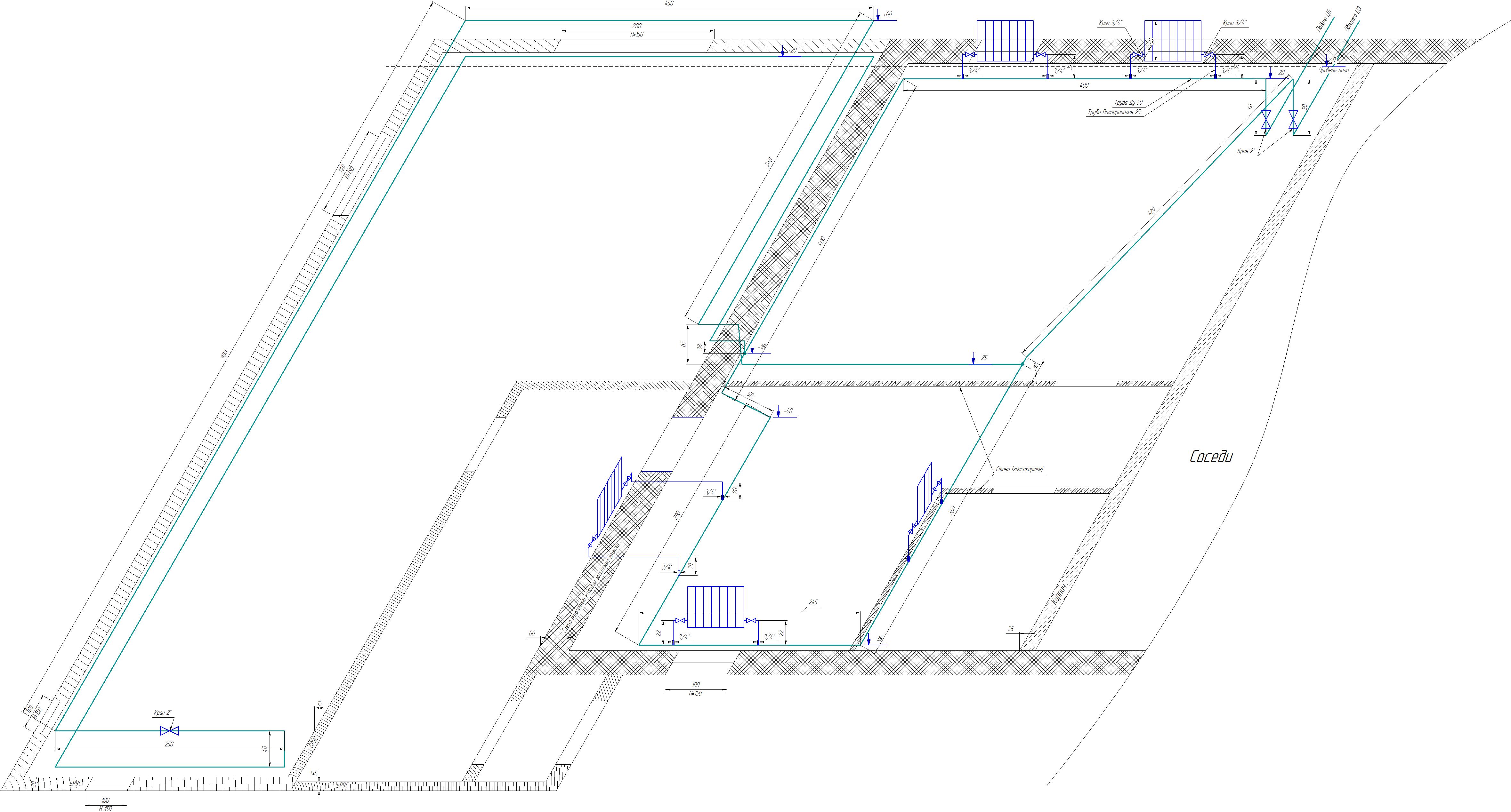 Здравствуйте уважаемые спецы и завсегдатаи. Очень нужен совет, что не так сделано. Не желает работать СЦО в частном доме. Система отопления ЦЕНТРАЛЬНАЯ, тип - Ленинградка с нижним подключением радиаторов. Левое плечо топится нормально, а в правом , после разветвления на 57 трубе не топятся три нижних радиатора (см. План СО).