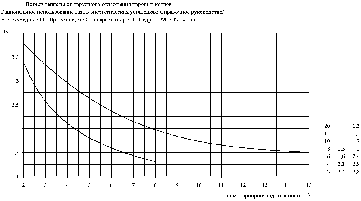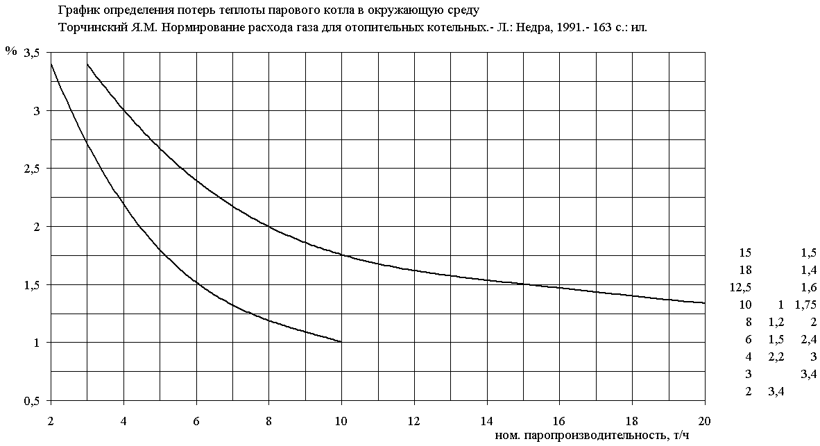 Добрый день! Может кто-нибудь поделится справочной информацией: нужен график зависимости нормативных потерь тепловой энергии с наружных поверхностей водогрейных котлов от теплопроизводительности котлоагрегата (именно водогрейных котлов), потому как для паровых котлов такой график есть. Вот, пжл, если кому необходим: