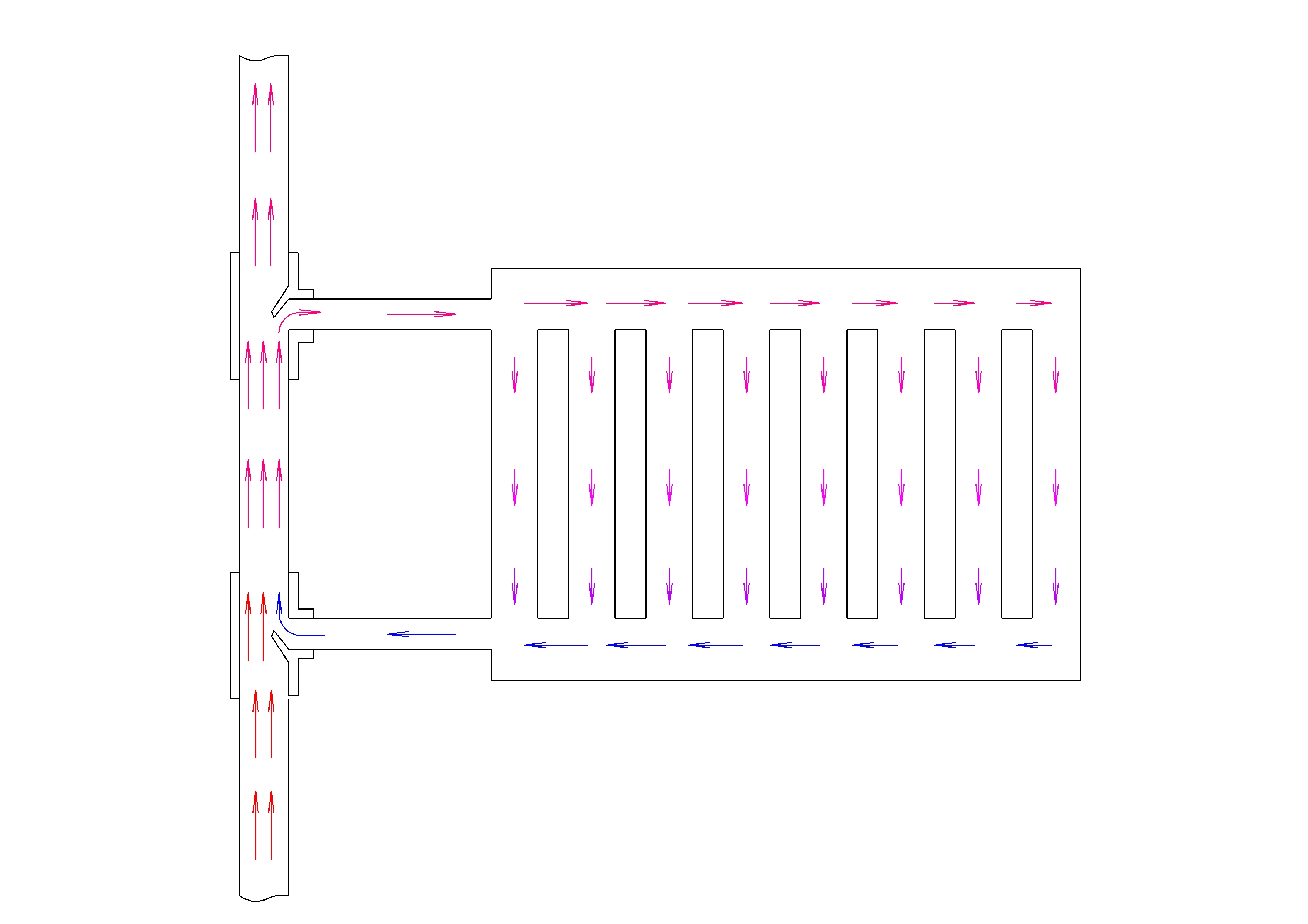 идея та же : залив теплоносителя в верх радиатора , слив охлажденного снизу . трубогиб не применялся монтаж отопления на последнем этаже : стояки закольцованны через стенку - в потолок на крышу не уходят . комната слева - подача снизу-вверх  .  .  .  комната справа . по стояку обратка вниз к соседям :  .  .