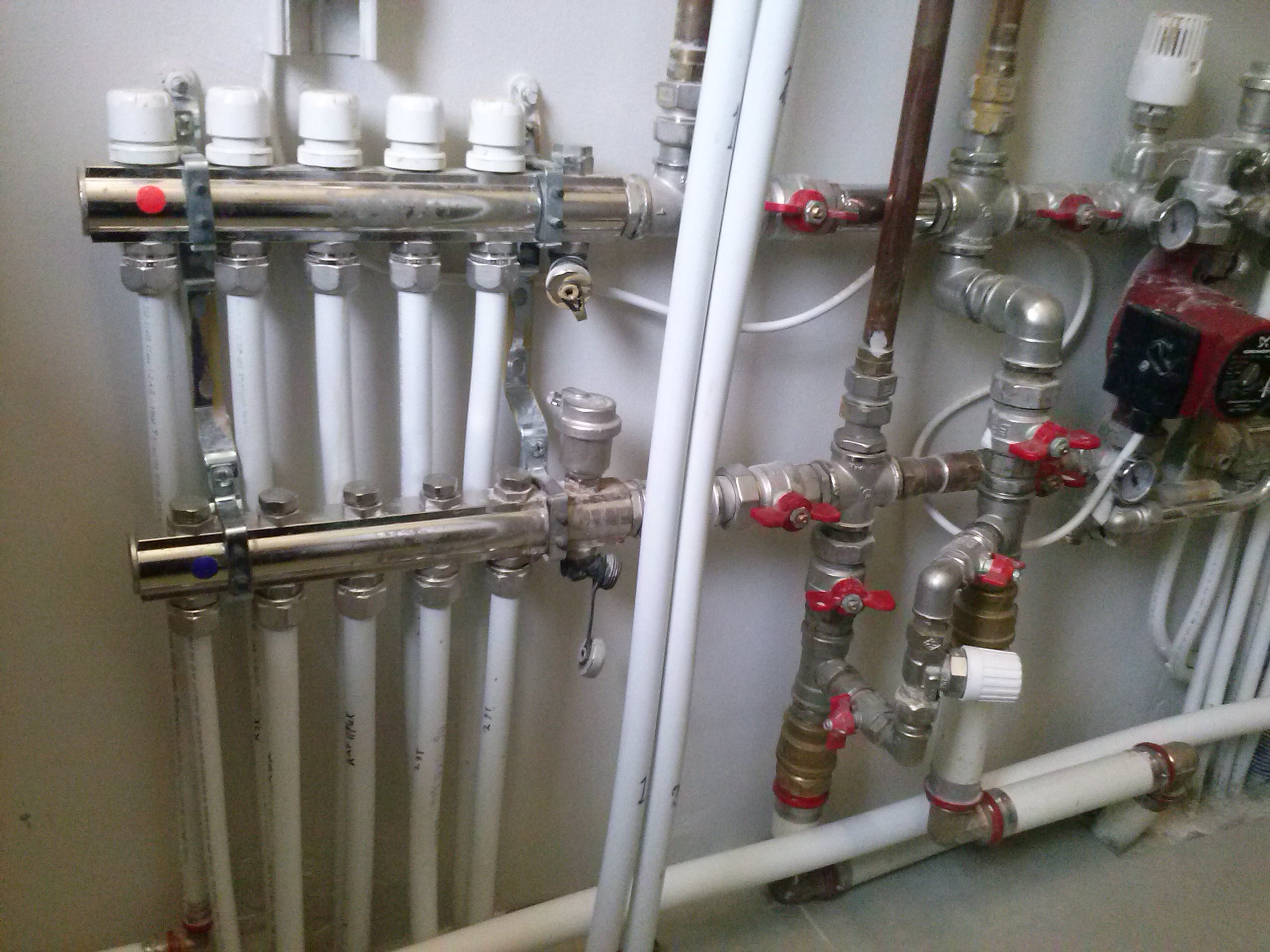 Цитата(Lamo @ 12.11.2013, 22:19)  Места в котельной не так много, а данные гребенки позволяют выводить контура и вверх и вниз, что позволяет сэкономить место. А потом монтажники "экономят" место как ЗДЕСЬ ))Цитата Возможно ли пустить одну ветку отопления на второй и третий этаж, а потом разделится на два этажа? Возможно ли тоже самое с теплым полом? Какие нагрузки?