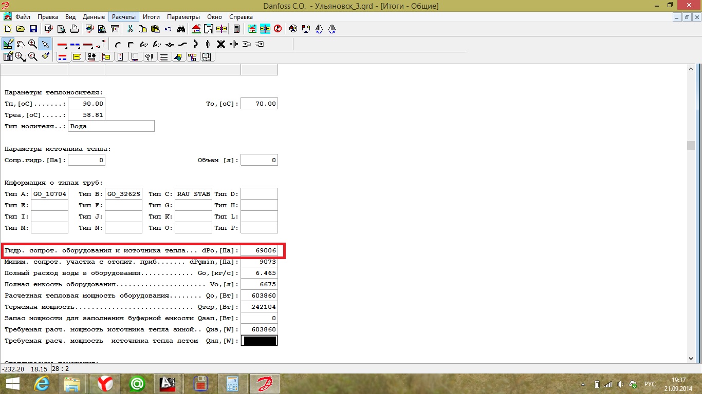 Цитата(Taibinsky @ 22.9.2014, 7:01)  Спасибо большое за ответ! А в чем была ошибка? Или не туда смотрели? Теплопотери маленькие, вы считаете? У меня расчетная температура -35 и теплопотери ориентировочно получаются 70-90 Вт/м2 в жилье; я думаю, что ваш проектант, который считал теплопотери не учел инфильтрационную составляющую. Еще раз внимательно посмотрите на итоги расчетов в Danfoss.CO на ту графу, которую я выделил, думаю отличия не будет от моей.