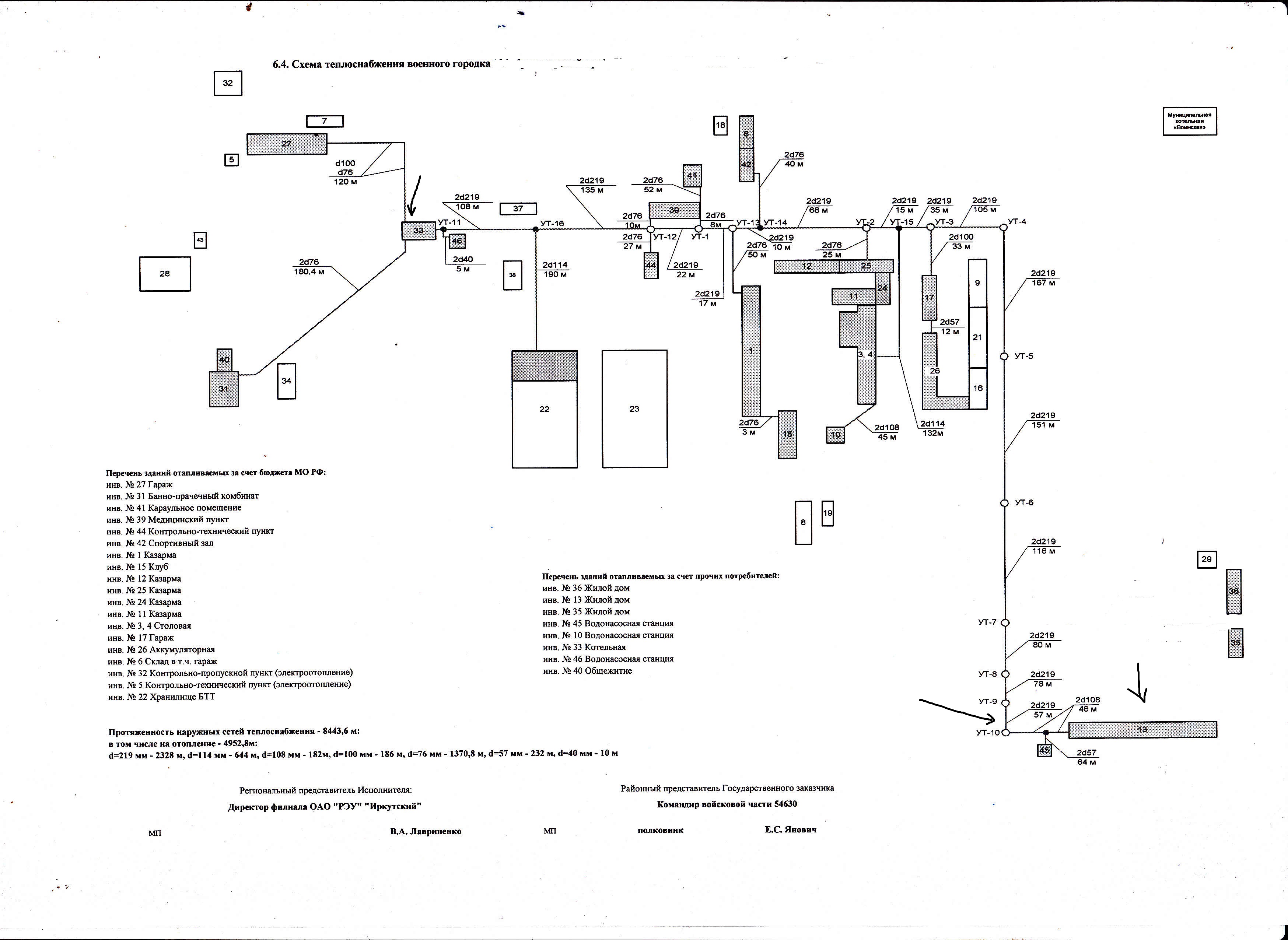 Доброго времени суток! Вобщем проблема с отоплением такая: на схме (в правом нижнем углу) жилой дом 13 обычная 5 этажка. в теплопункте УТ-10 стоит насос 11кВт 3000 об/мин. В самой котельной (№33 на схеме) насос 18,5кВт 3000 об/мин. на выходе из котельной давление 3,5 в УТ-10 приходит 4,5 до насоса(там уклон в сторону дома). Если насос в теплопункте не включен, все объекты теплые, на котельной подача 3,5 обратка 2,5-2,3, но дом потихоньку остывает не достаточно циркуляции. После того как включить насос перед домом в доме все ок., а в остальных зданиях подача горячая, а обратка холодная. давление приходит на котельную уже 3,4, иногда 3,5. получается насос вытягивает на себя все тепло из магистрали. Посоветуйте пожалуйста что делать. пробовали прикрывать задвижки до него и после, до него, после него и ничго не помогает. в прошлом году было все нормально.