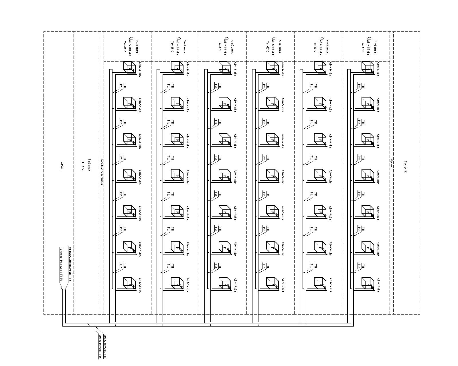 Делать систему теплоснабжения АВО полностью параллельной очень стремно. Длина горизонтальной подающей трубы Т11 около 110 м. Заказчик желает полное отсутствие автоматики sad.gif
