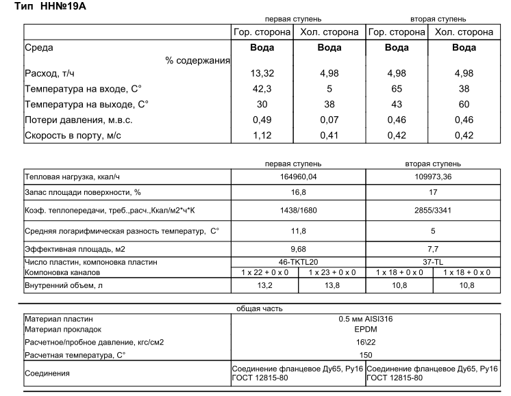 Для лета я не спорю. Все так. Но зимой то вы все равно на 2-ю ступень запустите 130 градусов. Вот и посмотрите, что у вас будет на выходе. Да, расход может быть "пшык", но это не отменяет решение. Цитата вот расчет моноблока. МОЭК возможно не пропустит моноблок. Когда то давно тоже его решил применить, завернули и велели сделать 2 отдельных ступени. И еще в расчетах у вас не учтен циркуляционный расход ГВС, который должен немного поднять температуру на входе во 2-ю ступень. т.е должно быть не 38, а 40 где-нить - МОЭК это контролирует. Да и на входе 65, в Москве вроде летний график 70/40.