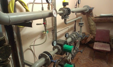 Здравствуйте, уважаемые знатоки! Помогите, пожалуйста, советом и мнением. Имеется 4-х этажное здание с цокольным этажом. Теплоснабжение от сетей ТЭЦ. Подающая труба системы отопления поднимается с цокольного этажа на тех. этаж и распределяет воду по стоякам. Обратка проходит по цокольному этажу. В здании находится ЦТП. Параметры воды на вводе: на подаче давление 5,4 атм., температура 72С; на обратке давление 4,9 атм. От помещения ЦТП трубы идут в помещение узла смешения. Узел смешения такой: насос стоит на обратке, после насоса по ходу движения воды перемычка к подающей трубе с установкой трехходового клапана. На подающей трубе в узле смешения параметры таковы: давление на входе 5,4, после трехходового клапана 4,8, температура после смешения 64 С. На обратке так: с системы отопления приходит 45 С, давление 4,5 атм, после насоса давление 5,4 атм. Измеряли давление на обратке в районе стояков - около 4,2 - 4,4 атм. Давление в подающей трубе на тех. этаже около 3 атм. Радиаторы и стояки прогреваются только на 3 и 4 этажах. На нижних этажах радиаторы практически холодные. Подозреваю, что все это из-за отсутствия циркуляции. Вода с обратки давит вверх и встречается с водой из подачи в районе 3 этажа и все на этом. Так ли это? Ну и кто виноват и что делать чтоб исправить ситуацию? И куда пропадает почти 1,5 атм, после узла смешения до тех. этажа?