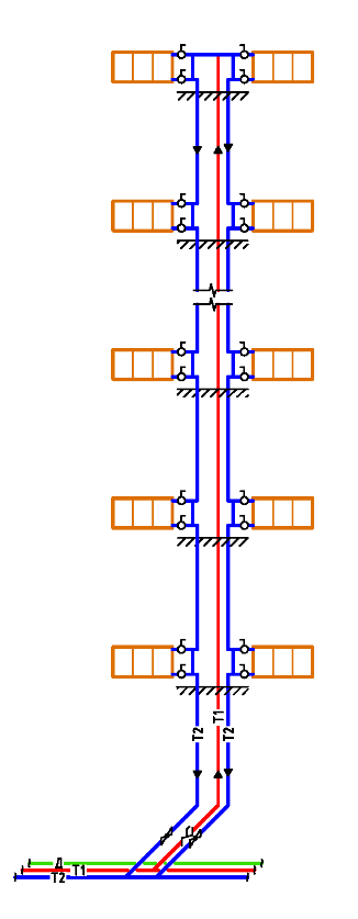 Планирую запроектировать однотрубную систему отопления с нижней разводкой и с Т-образными стояками в 16-этажном жилом доме.