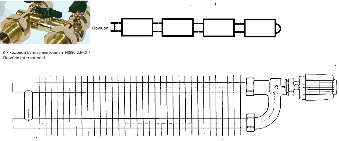 • бифилярную - Если прибор может иметь два раздельных хода по теплоносителю - приборы в группе подключать по этим ходам встречно или последовательно теплоносителю.