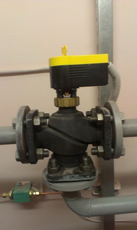 У Вас расчетный расход по СО 14 куб.м /час Кvs клапана 16 куб.м./час. Для обеспечения Вашего расхода нужен располагаемый перепад на вводе не менее 6 м. Какой по факту? Я думаю трехходовой поставили потому, что располагаемый напор низкий (менее 2 м) Меняйте клапан на Ду-50 и решатся проблемы с прогревом.