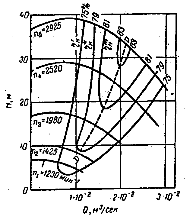 Вот, ещё пример универсальной характеристики насоса: