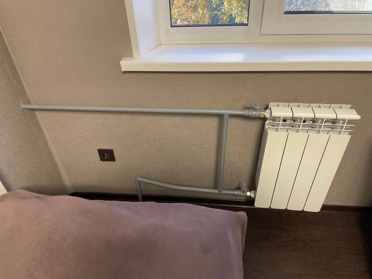 Сначала небольшая предыстория. Живу на 5 этаже, батарея первая в линии обратки от соседей. Года 2 назад они делали ремонт и меняли батареи. Байпас не поставили, да ещё и терморегулятор на вход батареи установили, что если его полностью не открыть, у меня и соседей снизу ужасный шум был из-за ламинарного потока. С этим разобрались, поменяли кран на вход и установили 1/2 байпас. Шум вроде прошёл, радость и покой.