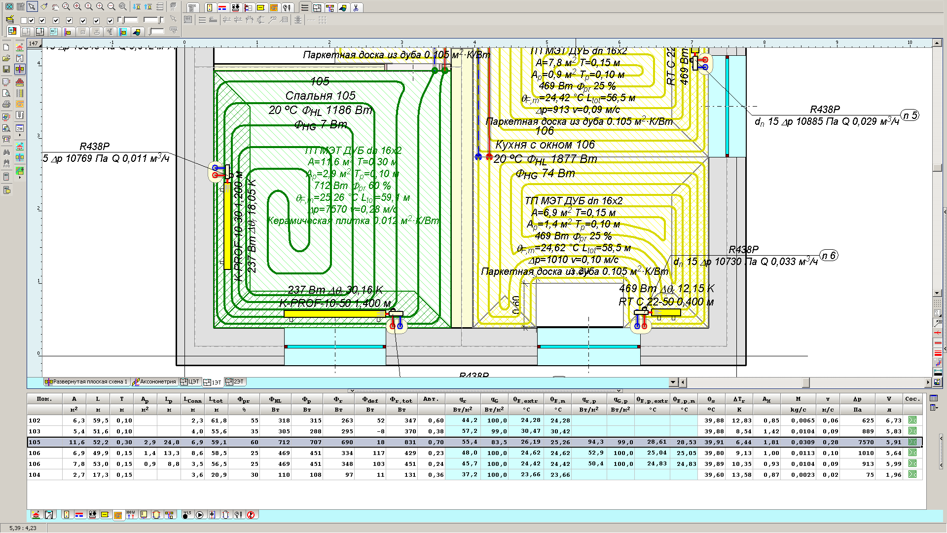 Вот на скорость и ориентируюсь. Да еще стараюсь делать контуры ВТП, чтобы потребный напор насоса не превышал примерно 40 кПа (чтобы насос до шестиметрового ставить). Просто прога сама высчитывает какой нужен напор насоса. Вот так и подбираю режимы.