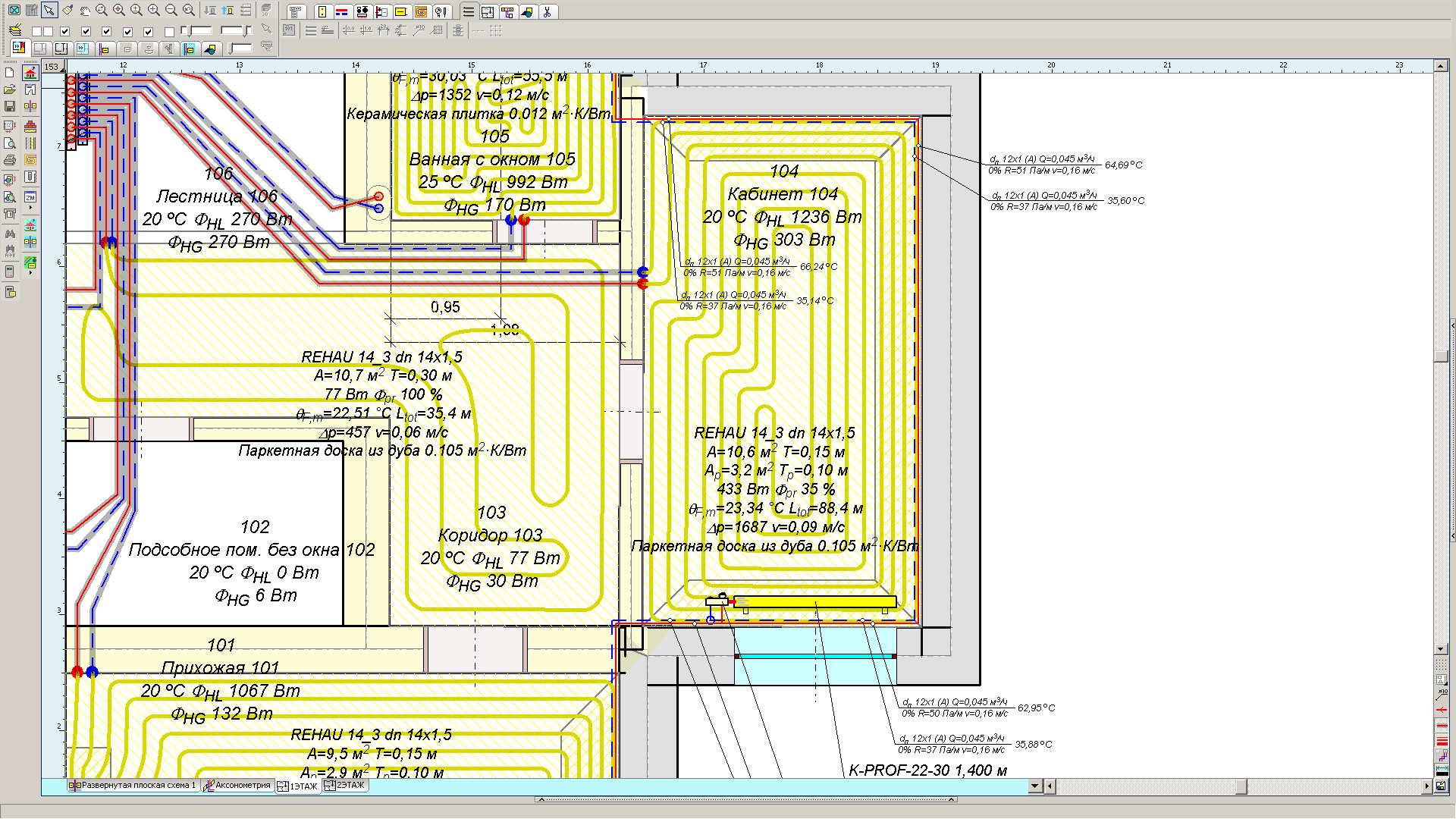 Коэффициенты теплоотдачи, соответственно, от горячего теплоносителя (вода) к разделяющей стенке и от стенки к холодному теплоносителю (воздух) я пока не задействовал что бы не запутаться.