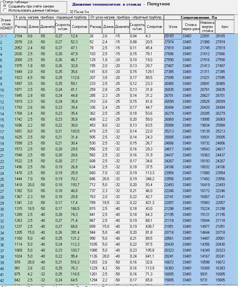h_1,h_2,h_3 …h_5 - потери магистрали от стояка (обратная труба)