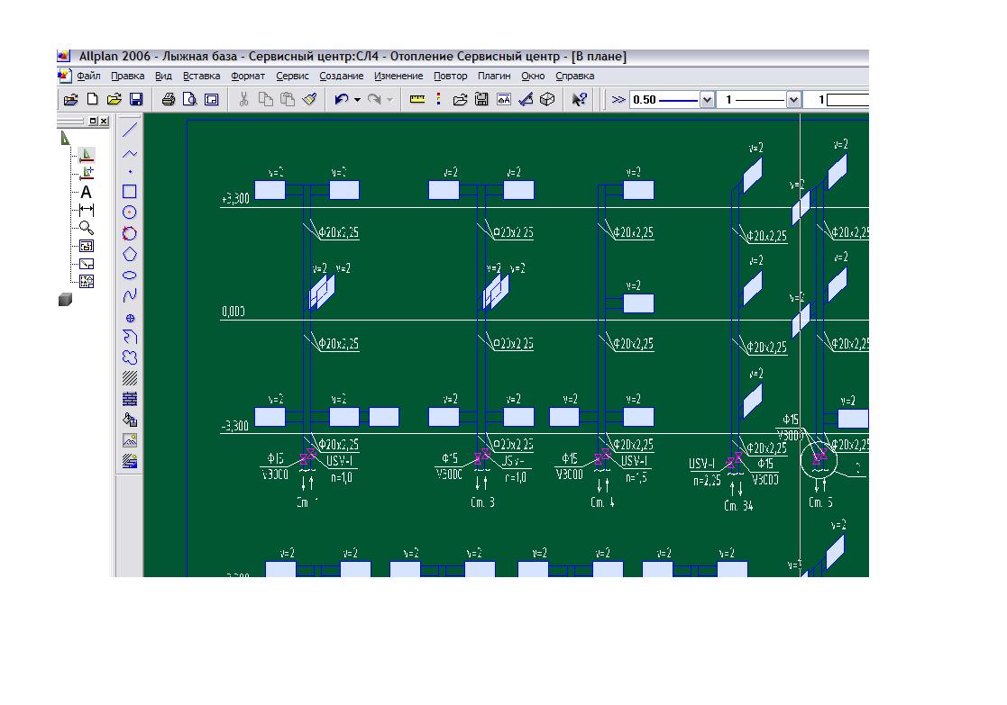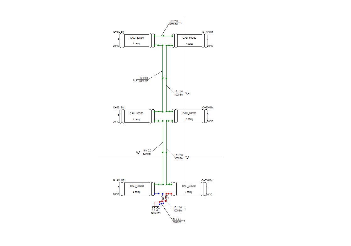 Сначала я рассчитывал двухтрубную систему отопления сервисного центра, но потом по просьбе ГИПа переделал ее в однотрубную с нижней разводкой и столкнулся с этой проблемой. Вот экспортированный из этой программы файл со схемой: