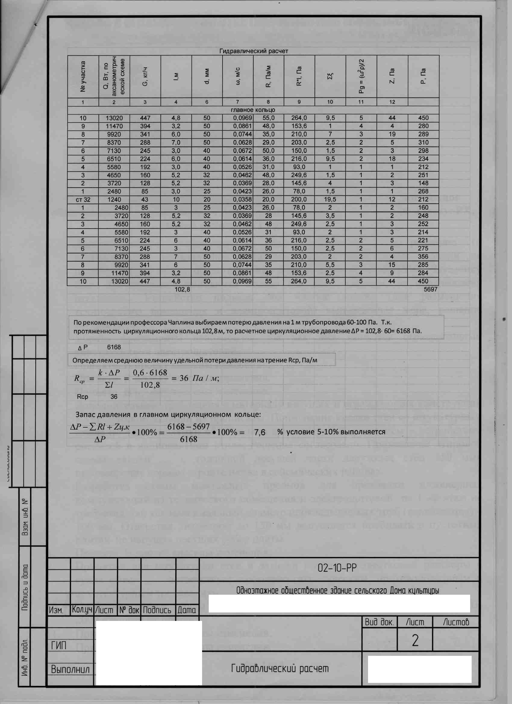 Это просто полный пи.....ц, а если этот проект ещё и экспертизу прошёл то это полный алес, даже если этот гидравлический расчёт от этой системы то 1 что кидается в глаза это реальное завышение диаметров причём раза в 3-5, для нормальной работоспособности я стараюсь подобрать диаметры так что бы скорость в них была в пределе от 0,3-07 м\с а не как ту 0,09 м\с на первом же участке, это получается просто от балды нарисовали чушь и впаривают вам её даже не вздумайте её собирать она вас разарит реально и по затратам на материалы и в дальнейшей эксплуатации, в ней воды будит на 4-7 таки систем и всю её нужно будит греть, требуйте денги!!! ГИПА под требунал