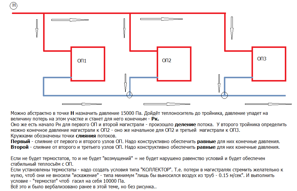 Если в межузловых трубах потери напора в свести к нулю, то разница будет формироваться только разницей меж "стояками = узлами ОП". Это уже ситуация типа "коллектора".