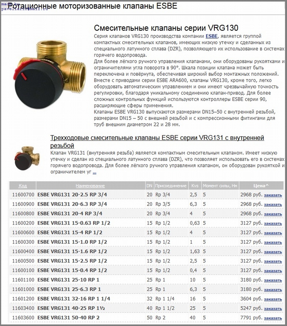 По тех параметам управления я подобрал детали: 3-х ходовой смесит. клапан ESBE VRG 130 + привод ESBE ARA 661, 230v, 120сек, 6нМ, время выбега серводвигателя 2мин, артикул 12101300