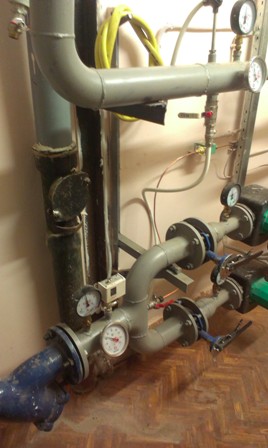 Нажмите для просмотра прикрепленного файла Нажмите для просмотра прикрепленного файлаТут много чего не соответствует проекту. Что-то делолось совсем без расчетов (например, поменяли подводящие трубы на пластик с изменением диаметра). Теперь все начали искать в чем же проблема. Пробовали включать два насоса. Особого эффекта не было.