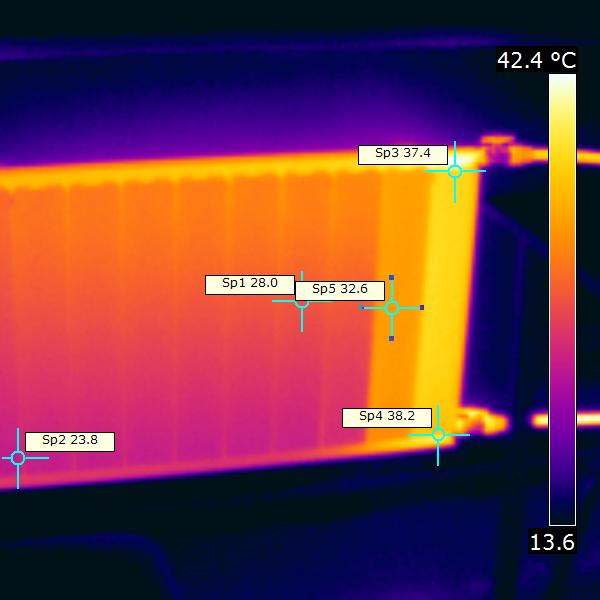 Уважаю Ваш опыт и высокую квалификацию. И многие Ваши мысли принял на вооружение. Но, в данном случае, вынужден сказать, что обычный биметаллический радиатор (с одними из самых больших сечений вертикальных каналов, как у Рифар Монолит), на стояке с нижней подачей, в принципе не может нормально работать. Что доказывает выше приведенная термограмма. И при этом у биметалла греет только одна-две первых секции.