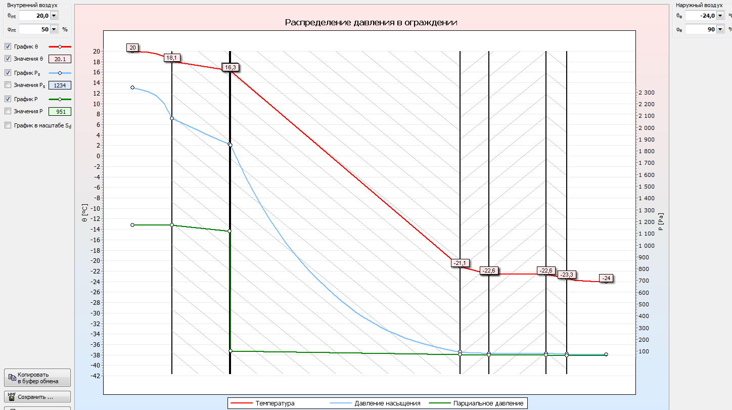 Сделайте расчёт парораспределения в стене (влагонакопление и возможная точка росы).