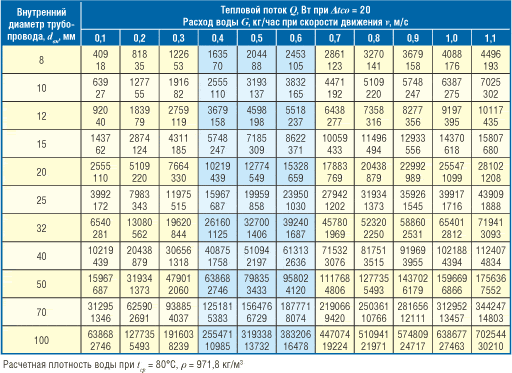Также советуют розлив и обратку сделать Ду=50 на всю длину. Есть-ли в этом смысл? Последние 3 радиатора не "скушают" весь поток теплоносителя из трубы Ду=50. Скорость теплоносителя в ЕЦ минимальная, поэтому для ориентировки можно считать, что пропускная способность Ду=25 будет 172 кг/час, а Ду=40 будет 439 кг/час. 172*3 = 516. Чуть поджато, но ИМХО не критично, тем более, что и на дальние стояки можно поставить Ду=20, и всё будет работать. Ду=25 поставил для лучшего баланса системы...