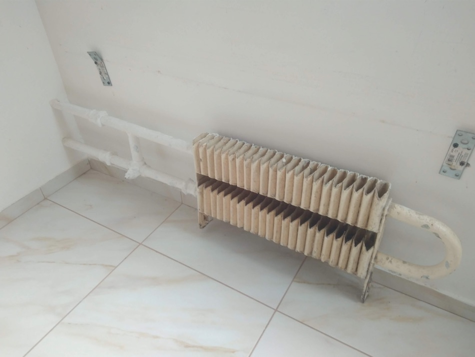 В рамках кап. ремонта в старой панельной девятиэтажке производят замену конвекторов на новые.
