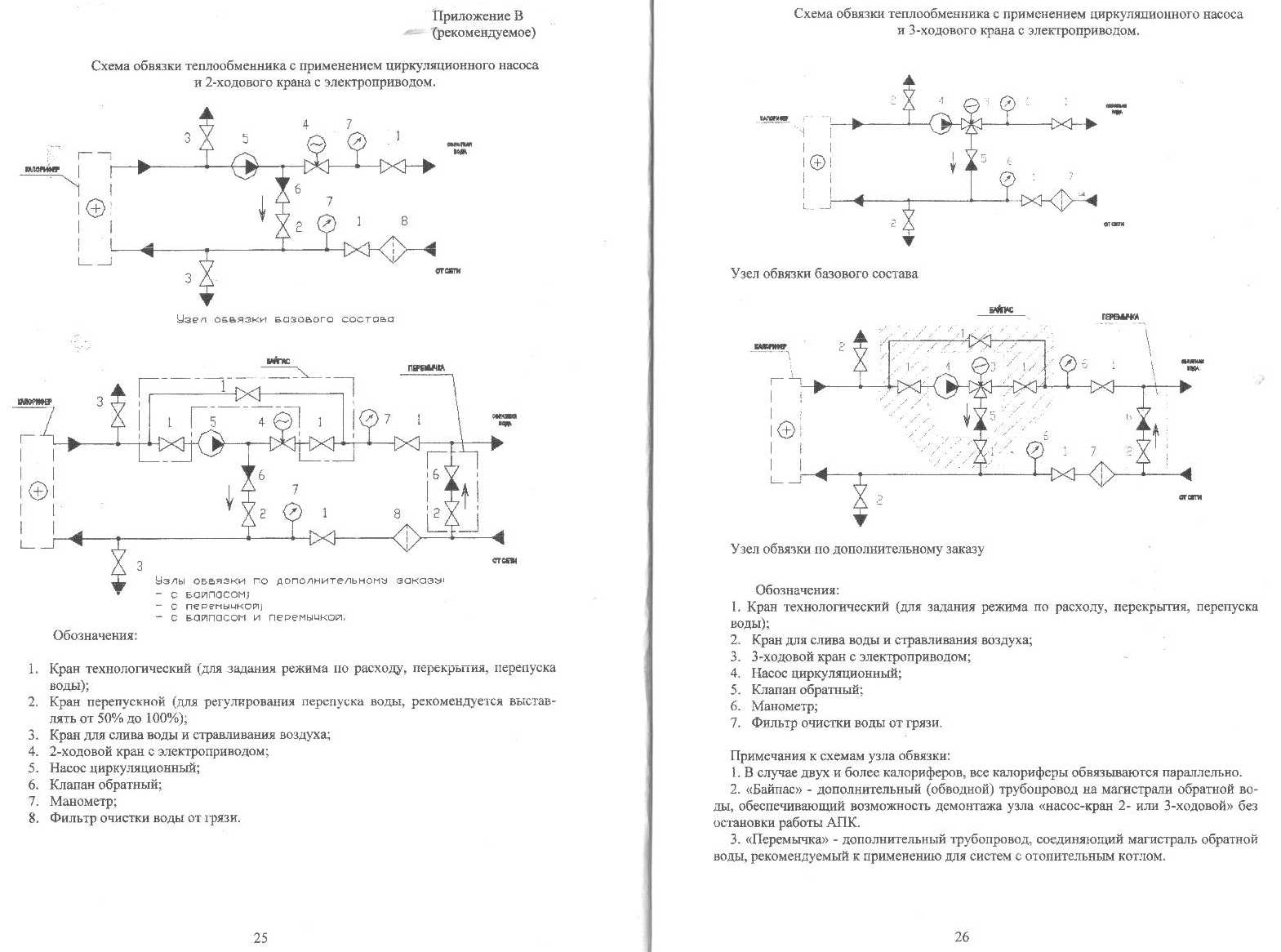 Нажмите для просмотра прикрепленного файлаТак вот и ответ. Пункт 3 перемычка устанавливается только если подключение производится от котла, у тут от теплообменник. Значит перемычка в данной схеме как собаке пятая нога. Да и насос как то странно под клапан воткнули куда он будет качать вопрос. Могу предположить что на внутрянке установлены дополнительные насосы, но по схеме непонятно. Короче тема не раскрыта, нужна Ванга.