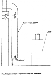 Либо просто сделать дополнительный приток 150х150 мм в нижней части подальше от котла.