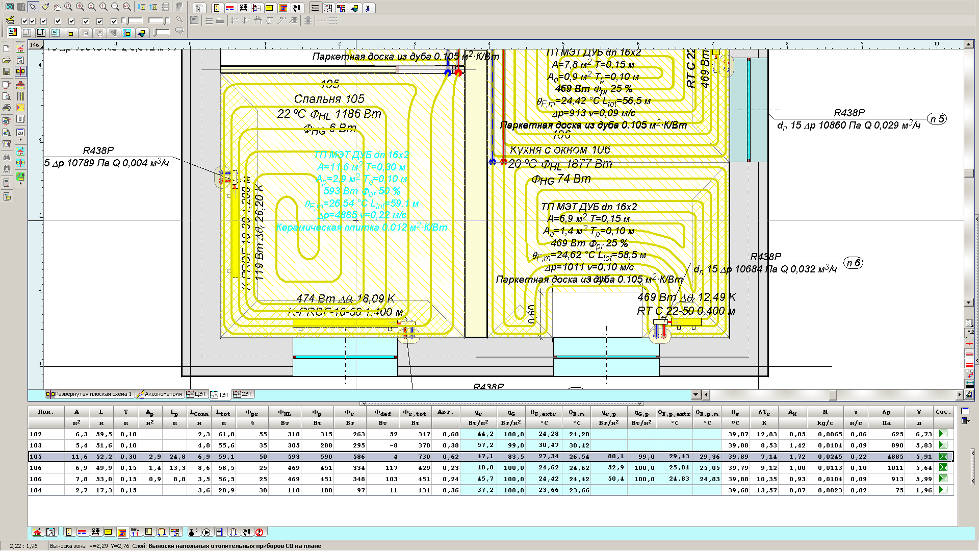 Вот на скорость и ориентируюсь. Да еще стараюсь делать контуры ВТП, чтобы потребный напор насоса не превышал примерно 40 кПа (чтобы насос до шестиметрового ставить). Просто прога сама высчитывает какой нужен напор насоса. Вот так и подбираю режимы.