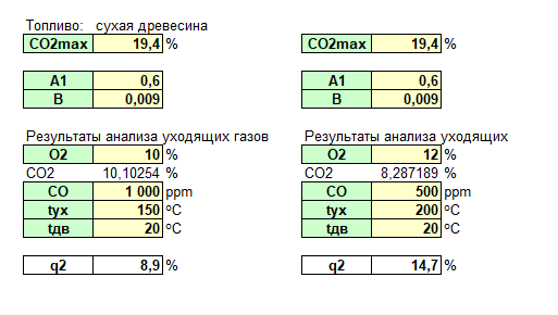 У меня нет прибора, но если исходить из разнцы температур уходящими газами в 100°, то получается что- 1сутки я выдал 30г/кал за(24часа), а на 2сутки 25г/кал за(24часа).
