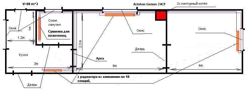 Нажмите для просмотра прикрепленного файлаВот, набросал план квартиры, где нарисовал планируемую разводку труб на обогрев.