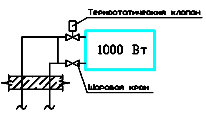 Элемент системы отопления с последовательным включение прибора с байпасом (ЗУ).