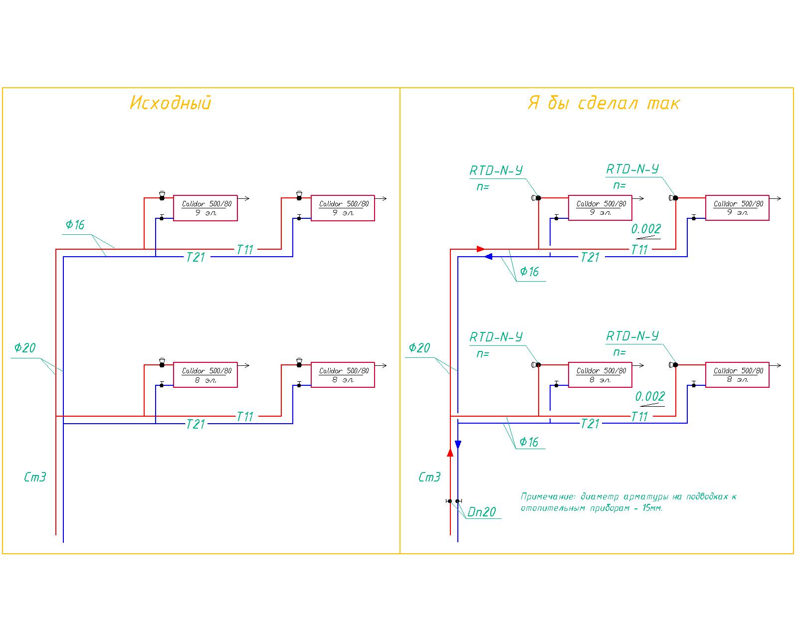 и последний адиатор как показано на чертежах! лутще так не подключать